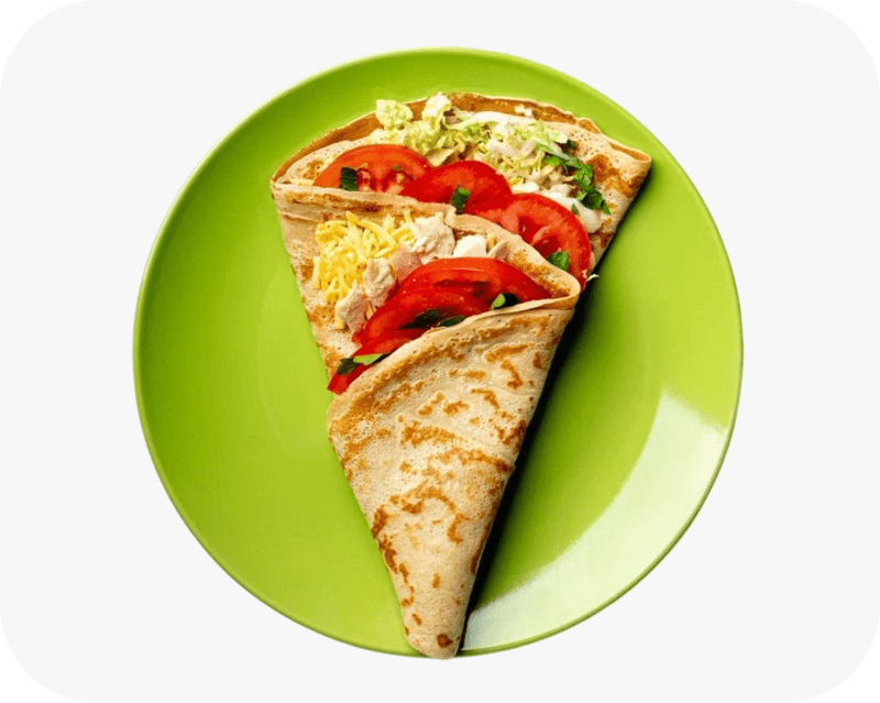 Рубленое куриное филе, помидоры, белый соус, пекинская капуста, зелень, сыр