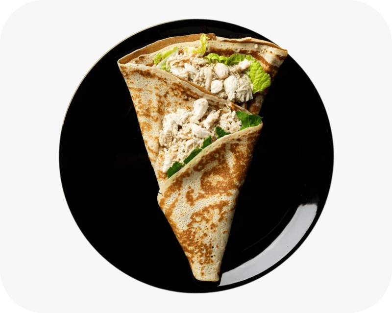 Рубленное куриное филе, пекинская капуста, белый соус, зелень